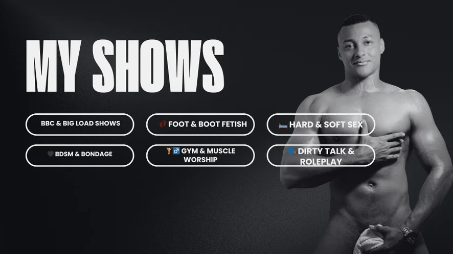 Anal, Dildo or Vibrator, Flashing, Flexing, Cock Ring, Spanking, Erotic Dance, Rimming, Doggy Style, Oil Show, Masturbation, Leather, Fingering, Striptease, Foot Fetish, Humiliation, Sex Toys, Handjob, Dirty Talk, Ejaculation