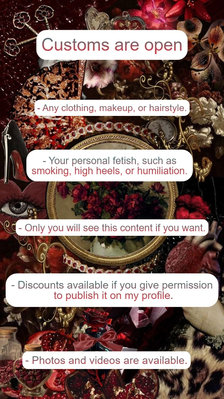 Sometimes you might notice that my profile doesn't have the right content for you. But that doesn't mean it's time to say goodbye, hehe. I can make it just for you, hehe. You can order custom content based on your personal preferences. Contact me via PM for all questions and prices ♥ I'm waiting for your message.