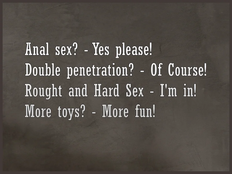 Anal, Anal Toys, Blowjob, Dirty Talk, Doggy Style, Erotic Dance, Fingering, Flashing, Flexing, Gagging, Massage, Foot Fetish, Dildo or Vibrator, Oil Show, Orgasm, Sex Toys, Spanking, Handjob, Nipple Toys, Selfsucking, Double Penetration